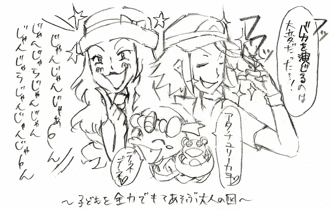 前の記事のやつとこれを描いてて気づいたんですけど、ストーンアクセサリーの形って相手の髪型(?)に似てますよね。